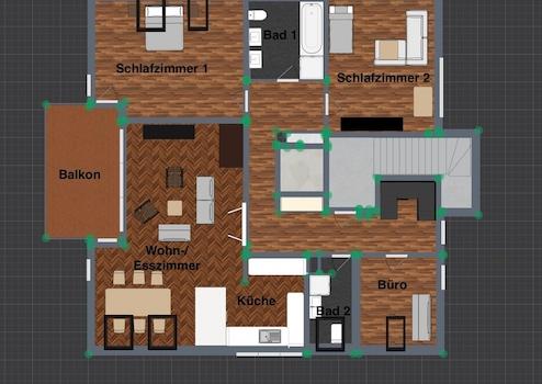 • 174 qm Wohnfläche (ca. 200 qm Grundfläche + 10 qm Keller))