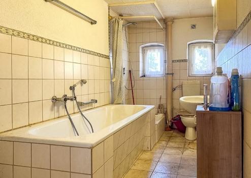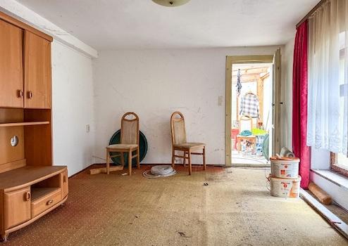 - EG: Kochen, Speisen, Wohnen, Schlafen, saniertes Bad mit Dusche/WC/Fenster/Gastherme, unsaniertes Bad mit Wanne/WC/Fenster, Wintergarten, Terrasse