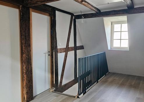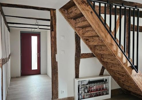 Diese helle und modern renovierte 5-Zimmer-Wohnung im historischen Denkmalhaus in Lienzingen bietet auf ca. 128 m² über zwei Etagen ein komfortables Zuhause für 2-4 Personen.