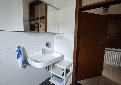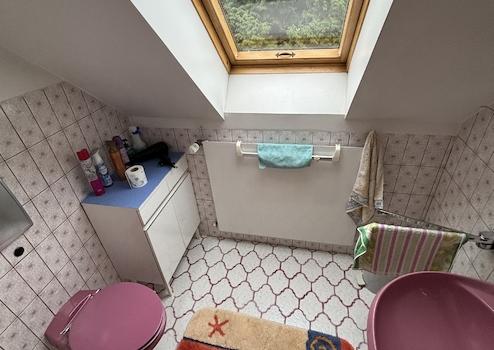 • Obergeschoss: drei voll ausgestattete Bäder (1 x Bad mit Wanne und Spiegelwand, 1 x Bad mit moderner Dusche, Waschbecken und Spiegelschrank, 1 x Bad mit Toilette, Waschbecken und Dachflächenfenster).