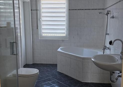 · Großes Badezimmer: Ein komfortables großes Bad mit einer Eckbadewanne zum Entspannen, einer separaten Dusche und viel Stauraum.