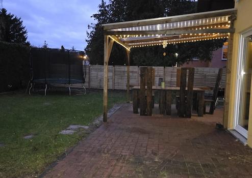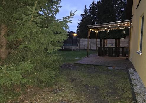 Das Haus liegt in einem ruhigen Wohnviertel von Berlin-Bohnsdorf in der Einflugschneise des BER, was eine gute Anbindung bietet.