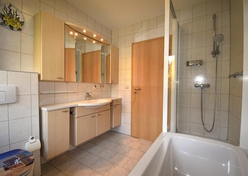 Sanitäreinrichtung: Bad mit Dusche, Wanne, WC, Waschtisch