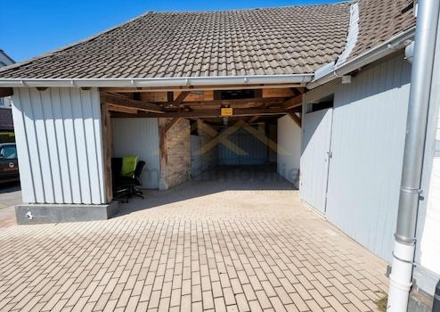 Zur Immobilie gehören praktische Außenanlagen wie ein Carport, eine Garage und drei Außenstellplätze, die ausreichend Parkmöglichkeiten bieten. Mehrere praktische Abstellräume sind ebenfalls vorhanden. Der Garten lädt zu gemütlichen Stunden im Freien ein und bietet Platz für verschiedene Aktivitäten.