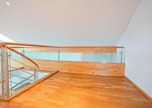 Über die edle Design-Wendeltreppe im Wohnzimmer oder alternativ über das Treppenhaus gelangen Sie in die offene Galerie und zu einem weiteren Arbeits- oder Gästezimmer.