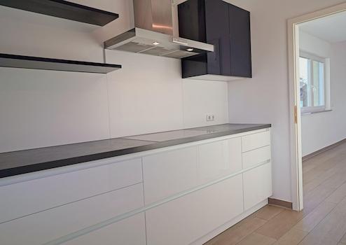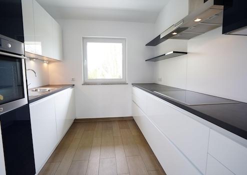 Die Wohnung ist teilmöbiliert: Im Mietpreis enthalten sind bereits die Benützung der modernen Einbauküche, der Badezimmerunter- und spiegelschränke in beiden Bädern sowie zwei maßgefertigte Einbauschränke.