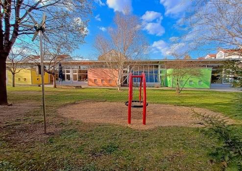 Mehrere Kinderkrippen, Kindergärten mit Hort, die neue Grundschule und das Gymnasium liegen am Rand der Grünanlage, also circa 5 bis 10 Minuten fußläufig entfernt. Mehrere Realschulen sind per Rad oder Tram erreichbar.