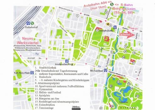 Kurze Wege in die Innenstadt dank hervorragender MVV Verbindungen und in unmittelbarer Nähe zu einer sehr schönen, neuen Grünanlage und zu einem Park mit hohem Freizeitwert.