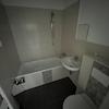 - gefliestes, innenliegendes Badezimmer mit Wanne und Handtuchheizkörper