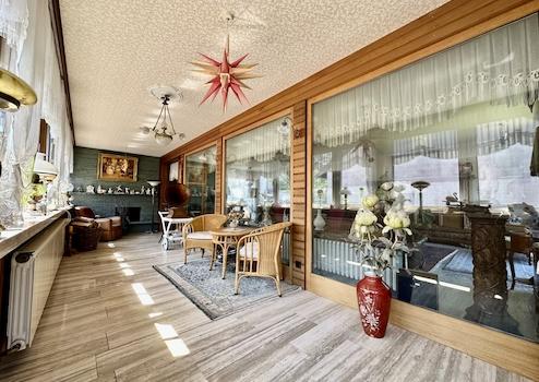 - Eine große Loggia bzw. ein Wintergarten mit Terrassenzugang und Kamin