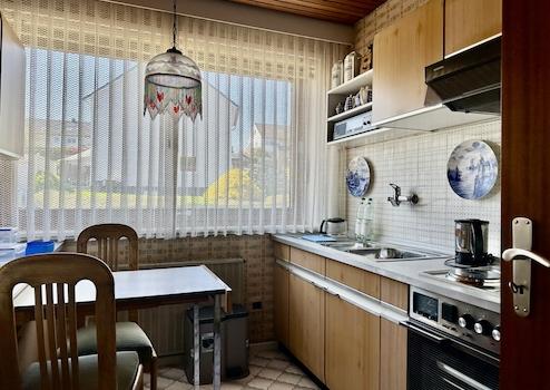 Neben dem Wohnzimmer befindet sich die Küche, welche mittels eines Durchbruchs eventuell zum Wohnraum hin geöffnet werden könnte.