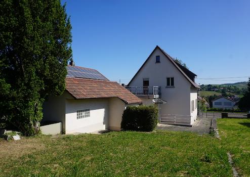 Dieses klassische Einfamilienhaus aus den 50er Jahren wurde in massiver Bauweise auf einem 5,52 a großen Baugrundstück errichtet. Im hinteren Teil des Grundstückes befindet sich eine kleine Garage sowie ein Schuppen mit Hühnerstall der nachträglich angebaut wurde.