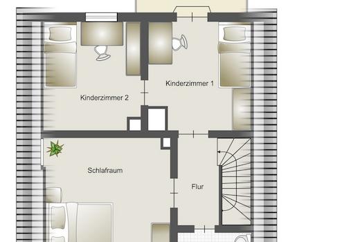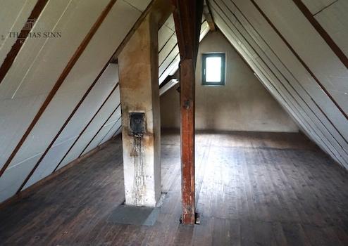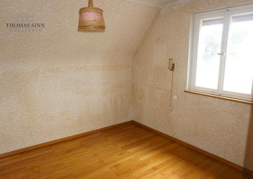 Über die Holztreppe erreichen Sie die Schlafebene des Hauses. Hier befinden sich drei Schlafzimmer (eines gefangen) sowie das Badezimmer. Die aktuell noch nicht erschlossene Bühne könnte evtl. noch weiter ausgebaut werden.