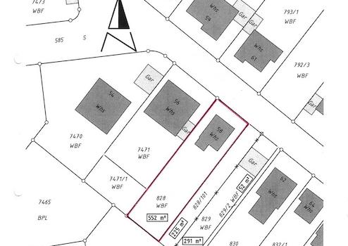 Bei einem Abriss richtet sich eine neue Bebauung nach § 34 BauGB Nachbarbebauung im Innenbereich. Das Grundstück wurde bereits mit Pflastersteinen abgetrennt und ist somit visuell gut zu erkennen.