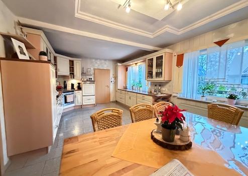 Beide Wohneinheiten verfügen über funktionale Einbauküchen, die im Kaufpreis enthalten sind. Die Küchen und Badezimmer im Erd- und Dachgeschoss befinden sich in gepflegtem Zustand und wurden bereits teilweise modernisiert. Die Raumgrößen sind großzügig gewählt und bieten praktische Lösungen für Familienalltag und Gäste.