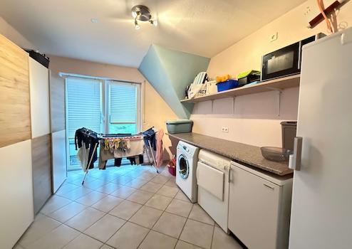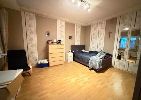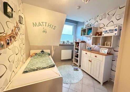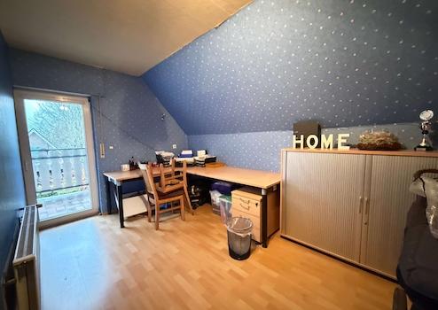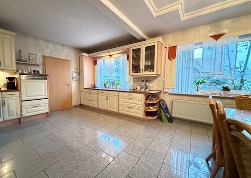 Die Obergeschosswohnung präsentiert sich ebenfalls großzügig und vielseitig nutzbar. Auch hier stehen eine eigene Einbauküche sowie mehrere gut geschnittene Zimmer zur Verfügung, die sich ideal als Schlaf-, Gäste- oder Arbeitsräume eignen. Das Badezimmer sowie die Küche befinden sich in einem soliden Zustand.
