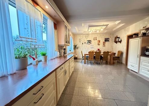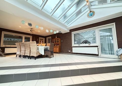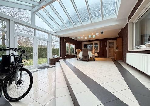 Ein absolutes Highlight ist der besonders große, beheizte Wintergarten, der als lichtdurchfluteter Lebensraum genutzt werden kann – ob als Wohnraumerweiterung, Essbereich oder gemütliche Rückzugsoase mit Blick ins Grüne. Die integrierte Fußbodenrücklauferwärmung sorgt selbst an kühlen Tagen für eine angenehme Atmosphäre.