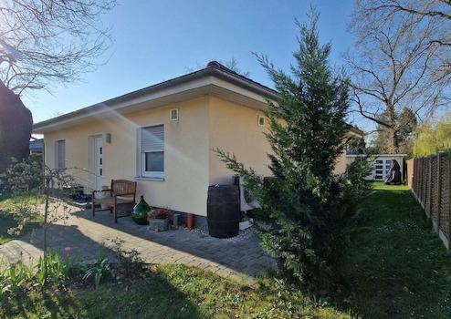 Naturnahe Lage in unmittelbarer Nähe Berlins. Es erwartet Sie ein durchdachtes Grundrisskonzept, eine qualitätsvolle Ausstattung und der Blick ins Grüne in Ihren großen Garten. Der barrierefreie Bungalow ist für den ruhesuchenden Hauptstädter konzipiert. Dieser Wohnsitz überzeugt und bezaubert besonders durch den Wintergarten mit Südausrichtung.