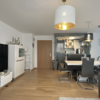 Die Bodenbeläge bestehen aus Parkett in den Wohnräumen und Fliesen in den funktionalen Bereichen – eine Kombination, die Wärme, Stil und Pflegeleichtigkeit vereint.