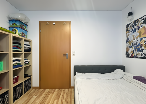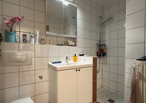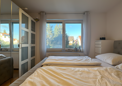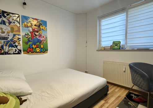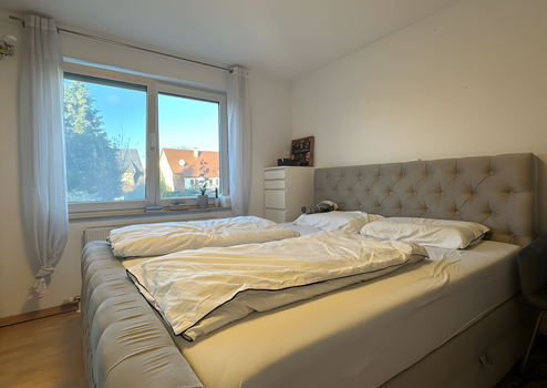Die Wohnung verfügt über zwei Schlafzimmer, die sich flexibel als Kinderzimmer, Gästezimmer oder Homeoffice nutzen lassen. Das Badezimmer ist mit Fliesen versehen und bietet eine Badewanne, ein Waschbecken und ein WC.