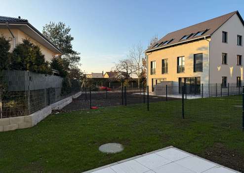 In unmittelbarer Nähe, etwa fünf Gehminuten entfernt, befindet sich ein Supermarkt, der den täglichen Bedarf mühelos deckt. Dieser liegt in einem harmonischen Umfeld, das sowohl mit Spielplätzen als auch mit kleinen Parkanlagen punktet, was es insbesondere für Familien mit Kindern attraktiv macht. Mehrere Spielplätze sind innerhalb weniger Minuten erreichbar und bieten den Kleinsten viel Raum für Abenteuer und Spiel.
