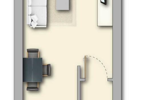 Diese moderne 1‑Raumwohnung ohne Balkon setzt auf maximale Wohnfläche und klare Linien: Der offene Übergang vom Wohnzimmer zur Küche schafft ein luftiges Raumgefühl und lädt zum entspannten Kochen und Wohnen in einem durchdachten Setting ein. Reduzierte Optik, gut nutzbare Stellflächen und eine aufgeräumte Raumwirkung sorgen für einen zeitgemäß-sachlichen Look. Das geflieste Wannenbad präsentiert sich praktisch und pflegeleicht. Wer draußen keine Fläche benötigt, gewinnt hier drinnen an Komfort und Flexibilität – ideal für alle, die es unkompliziert, modern und clever geschnitten mögen.