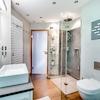 * Zwei modernisierte Badezimmer (Ober- und Untergeschoss) mit Duravit, Vola Ausstattung und bodentiefer Regendusche