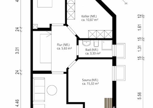 Das Haus ist voll unterkellert und bietet dank einer Raumhöhe von 2,39 m reichlich Platz für Stauraum, Hobbys oder ein Gästezimmer. Für zusätzlichen Komfort sorgt eine eigene Sauna.