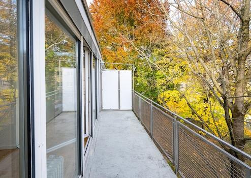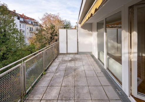 Zwei Balkone (Ost- und Westausrichtung) sowie sonnige Dachterrasse mit Blick ins Grüne