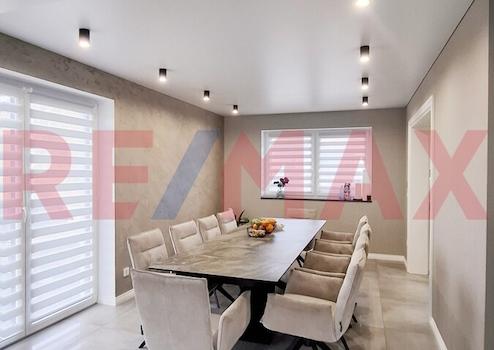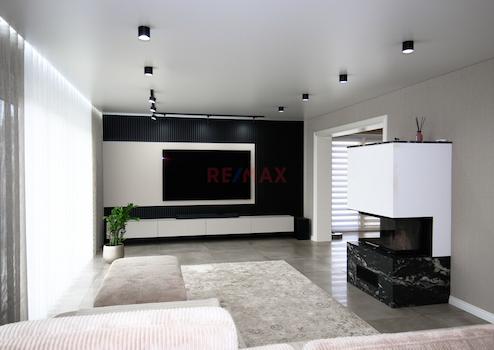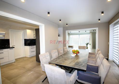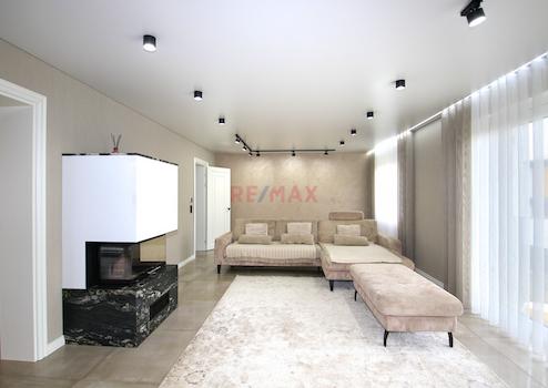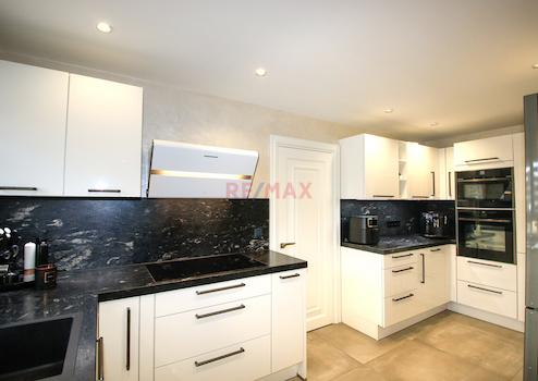 Hier können Sie sowohl die kühlen Winterabende am wohligen, warmen Kamin verbringen, als auch die warmen Sommertage im Freien auf dem Balkon. Am großzügigen Esstisch ist Platz für die große Familie, von hier kommen Sie in die moderne Küche mit schicker Einbauküche, die keine Wünsche offenlässt.