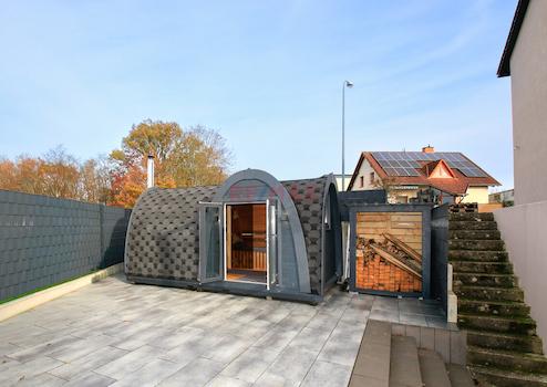AUSSENBEREICH: dieser bietet genug Platz die Stunden im Freien zu genießen, zum Grillen und Chillen. Das Highlight bietet das außergewöhnliche, schicke Außen-Saunahaus mit Außensauna. Weiter haben Sie viel Platz zum Spielen für Kinder und zu Anpflanzen von Obst und Gemüse.