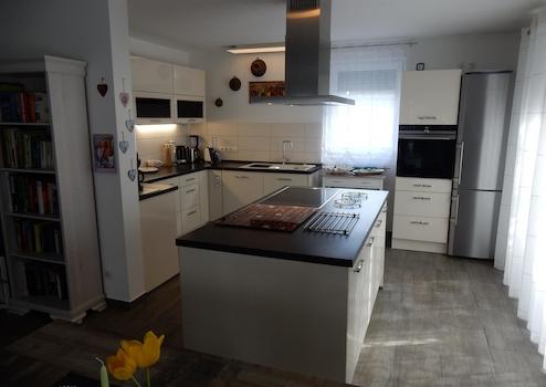 Die großzügige Wohnküche gestaltet sich für Familie und Freunde zum Mittelpunkt des Hauses.
