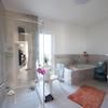 Beim geräumigen Bad wurde auf helle, warme Farbtöne größten Wert gelegt.