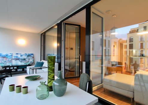 In der Wohnung wurde Eichen Echtholz Parkett verlegt, die Fenster sind dreifach verglast. Die Deckenbeleuchtung im Bad, Küche und im Flur verbleibt in der Wohnung und taucht alles in ein warmes Licht. Eine wunderschöne Südost-Loggia erstreckt sich über die gesamte Breite der Wohnung. Durch die breite Fensterfront ist die Wohnung ausgesprochen hell.
