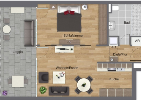 Ihre zwei Zimmer haben eine bodentiefe Fensterfront zur großzügigen Loggia hin mit Süd/Ost-Ausrichtung und einen wunderschönen Blick auf die Parkanlage. Vom Flur gelangen Sie direkt in den Wohn-, Essbereich. Zwei große Einbauschränke im Flur bieten viel Stauraum. Einer dieser Einbauschränke ist als Waschmaschinenplatz vorbereitet, doch zur Wohnung gehört auch ein Waschmaschinenstellplatz im Keller.
