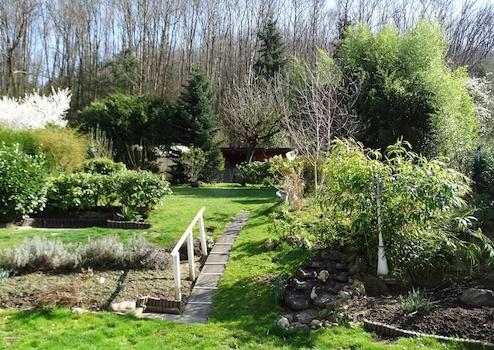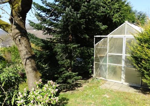- Angelegter und gepflegter Garten mit Garten- und Gewächshaus
