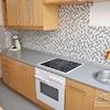 Einbauküche komplett ausgestattet mit Waschmaschine, Tisch mit 2 Stühlen.