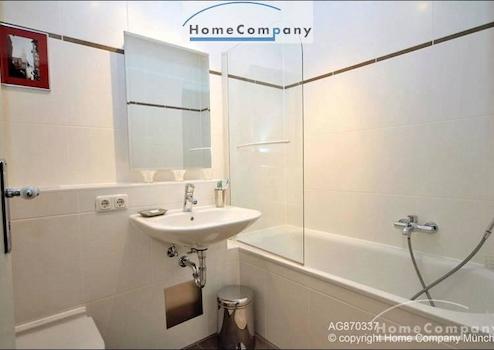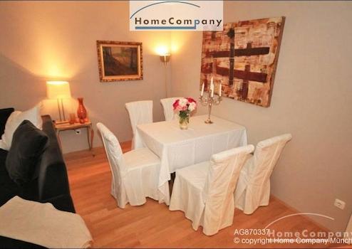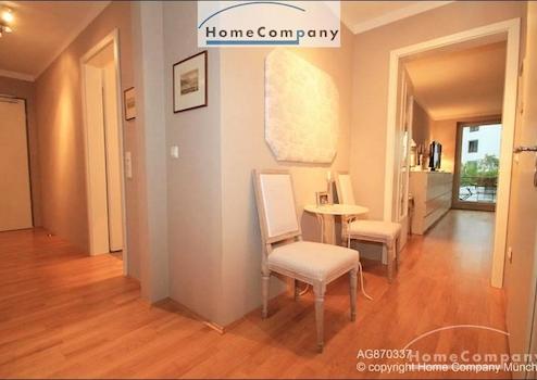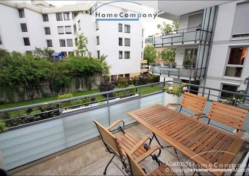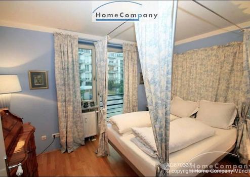Hochwertig möblierte 3 Zimmer Wohnung in München-Bogenhausen. Geschmackvolle Möblierung aus einer Mischung von Antiquitäten und Designer Möbeln. Großzügiges Wohnzimmer mit Ecksofa und Esstisch für 4 Personen, Zugang zum großen Balkon mit Balkonmöbeln. Schlafzimmer mit Himmelbett (1,40 x 2,00 m) und Schrank, zweites Schlafzimmer mit hochwertiger Schlafcouch (1,80 x 2,20 m) und Schrank. Das besondere an der Wohnung sind die beiden Bäder, jeweils angrenzend an die Schlafzimmer. Moderne Einbauküche mit Spülmaschine, Cerankochfeld und Allem für den tägl. Bedarf. Telefon- und Internetflatrate in der Miete enthalten.