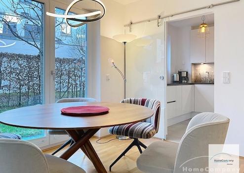 Diese zentral, zugleich jedoch ruhig im geschützten Innenhof gelegene 4-Zimmer-Erdgeschosswohnung überzeugt durch ihre hochwertige Ausstattung, einen durchdachten Grundriss und einen außergewöhnlich großen Garten mit ca. 160 m² Sondernutzungsrecht.