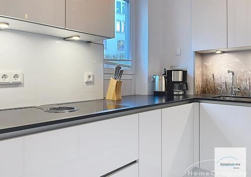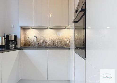 Voll ausgestattete Einbauküche mit Induktionskochfeld und Abluftsystem