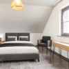 Zur Straße liegt das größere Schlafzimmer, zwei weitere Räume befinden sich im hinteren Bereich. Vom linken hinteren Raum gelangt man auf die absolut schöne Dachterrasse.