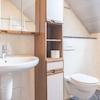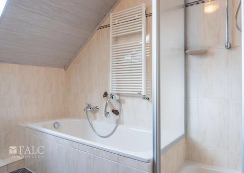 Dort befindet sich ein Badezimmer mit Dusche und Wanne in zeitloser schöner Optik.