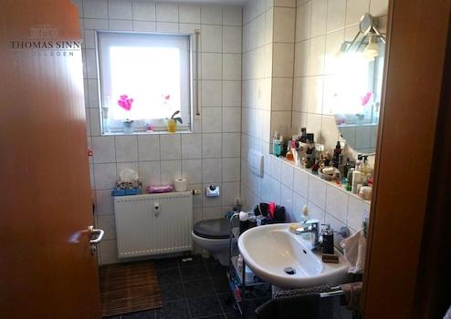Die Wohnung liegt vom Hauseingang im 1.OG, allerdings aufgrund der Hanglage von der Terrasse aus, auf EG-Niveau. Größere Einkäufe kann man somit stufenlos über die Terrasse befördern.