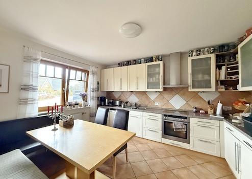 Die Küche bietet viel Platz sowie eine helle, funktionale Einbauküche. Ein zusätzlicher Essbereich eignet sich perfekt für das Frühstück oder die Mahlzeiten im Alltag.