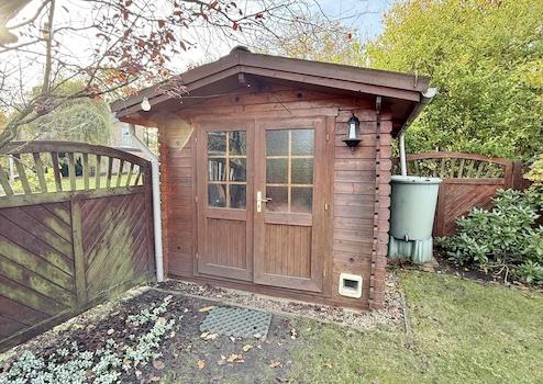 Neben einem Gartenholzhaus für Werkzeuge und Geräte steht Ihnen angrenzend an dem Carport ein zusätzlicher Holzschuppen für Fahrräder oder weitere Utensilien zur Verfügung.