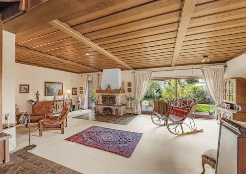 • Großer Wohnbereich mit Kamin und Zugang zum Garten