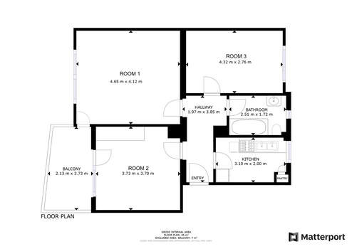 Die Wohnung verfügt über drei gut geschnittene Zimmer, die voll möbiliert einzeln vermietet werden. Küche und Bad werden gemeinschaftlich genutzt.