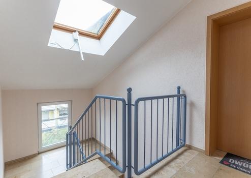 Nachdem Sie Ihr Fahrzeug auf dem Außenstellplatz am Haus abgestellt haben, betreten Sie das gepflegte Mehrfamilienhaus und gelangen über das Treppenhaus in die schöne, ca. 134,9 m² große 3-Zimmer-Maisonettewohnung im Dachgeschoss.