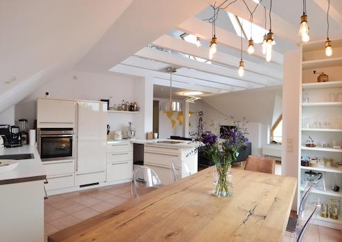 Dachgeschoss: Vier-Zimmer-Maisonette, Küche, mit zwei Bädern und großer Loggia