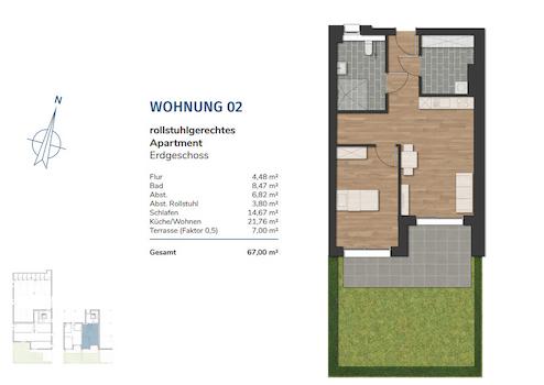 Hochwertige Ausstattungen, nachhaltige Bauweise und Energiekonzepte sorgen für niedrige Betriebskosten und einen hohen Wohnkomfort. Alle Wohnungen werden mit Echtholzparkett ausgestattet.